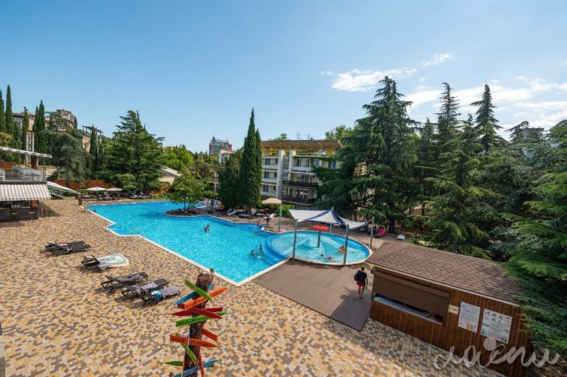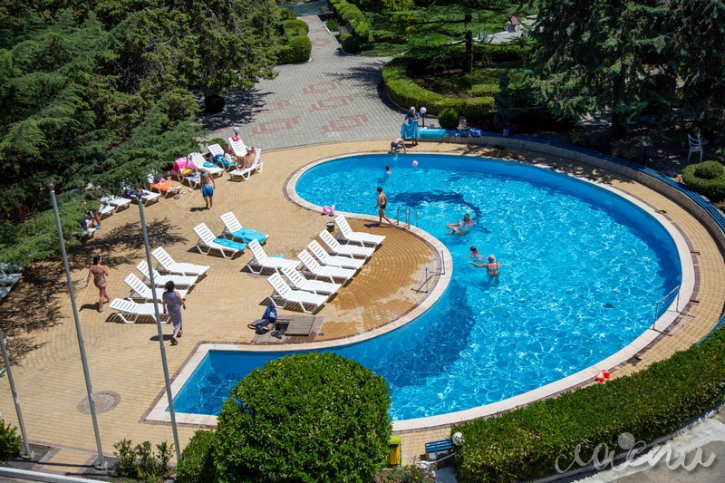 Бассейны: открытый бассейн с подогревом 30мх12м, есть детская зона. Период работы бассейна: с 1 мая до 1 ноября.