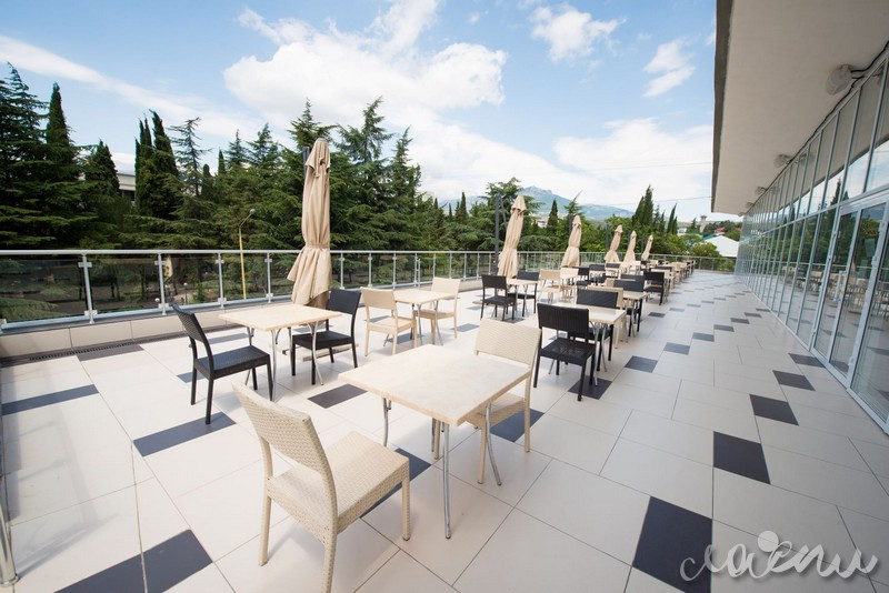 Рестораны и бары: столовая: расположена в отдельном здании в 200 м от спального корпуса; фито-бар: расположен в административном здании, в 200 м, от спального корпуса.