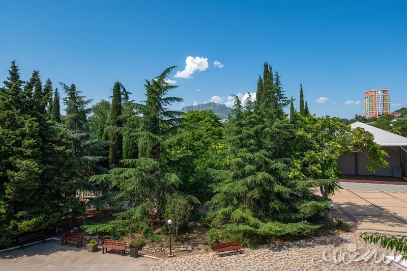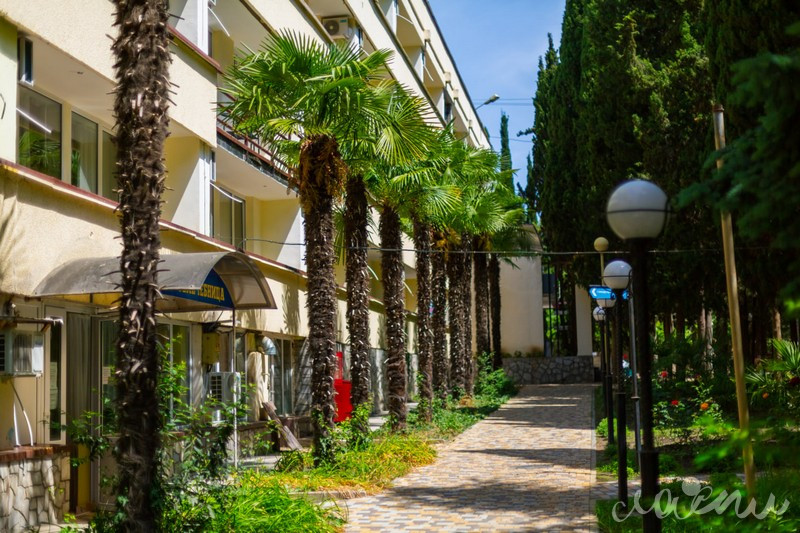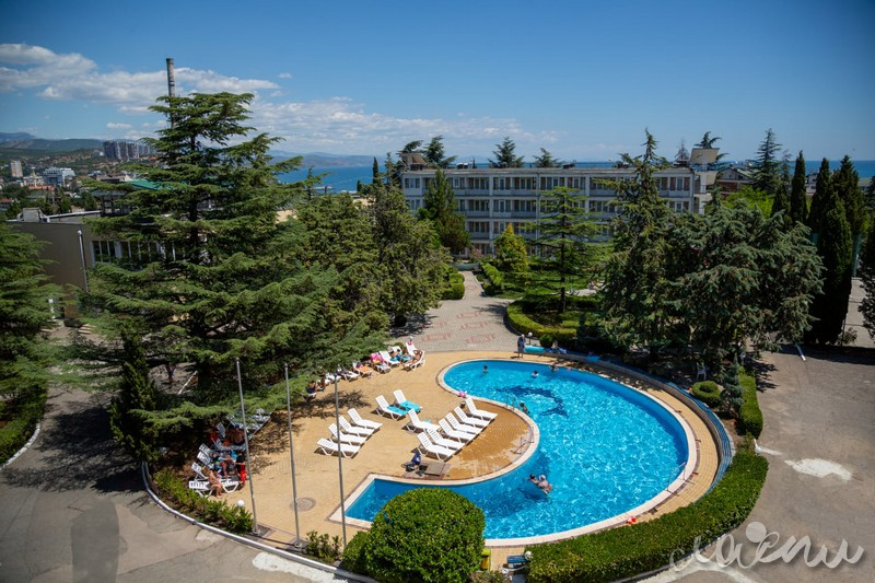Пляж: Собственный (3 карты), мелко-галечный, в 1000 м от санатория, благоустроенный (теневые навесы, лежаки, кабинки для переодевания, душ, медпункт, кафе-бар). Проход на пляж через подземный тоннель или бесплатный проезд из санатория. Посещение оборудованного пляжа по установленному графику с 8:00 до 20:00. Доставка до пляжа осуществляется автобусами санатория с 9:00 до 18:00. В случае шторма или ненадлежащих погодных условий, пляж санатория закрывается и автобусы в этот период не осуществляют транспортировку Гостей на пляж. Во время шторма на море спасение людей на воде санаторием не обеспечивается.